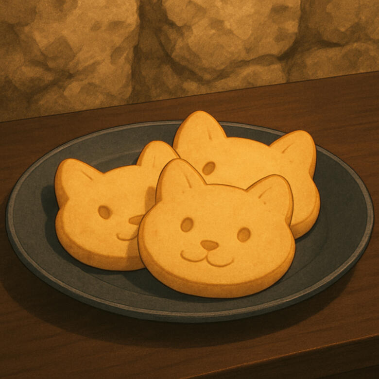 These adorable Shiba head-shaped cookies are baked to golden perfection and lightly drizzled with sweet maple. They're the top-tier snack choice for raiders needing a little crunchy cuddle between pulls.