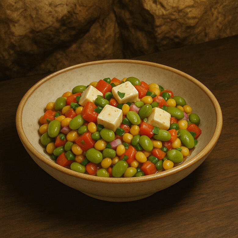 A bright and refreshing medley of soft cheese and tender beans, lightly tossed to perfection. This charming salad brings a sun-kissed balance of comfort and elegance.